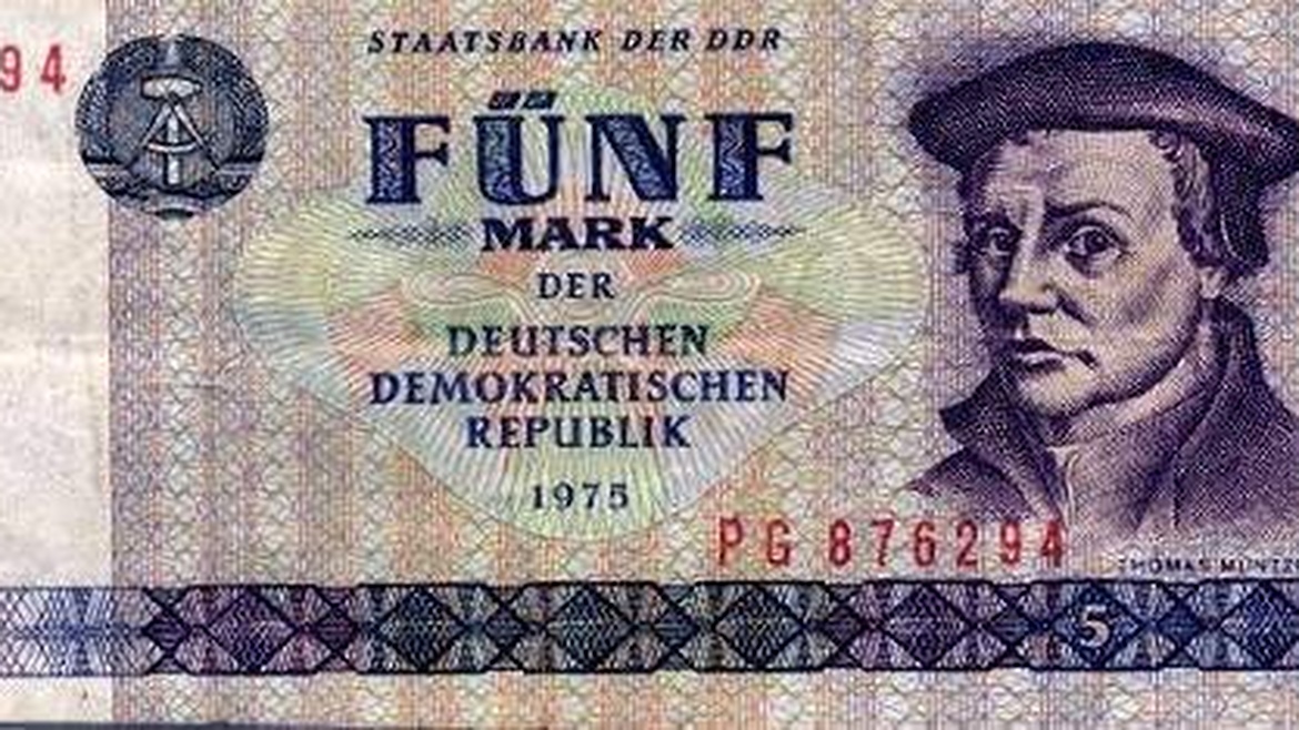 Müntzer en un billete de la República Democrática Alemana-RDA.