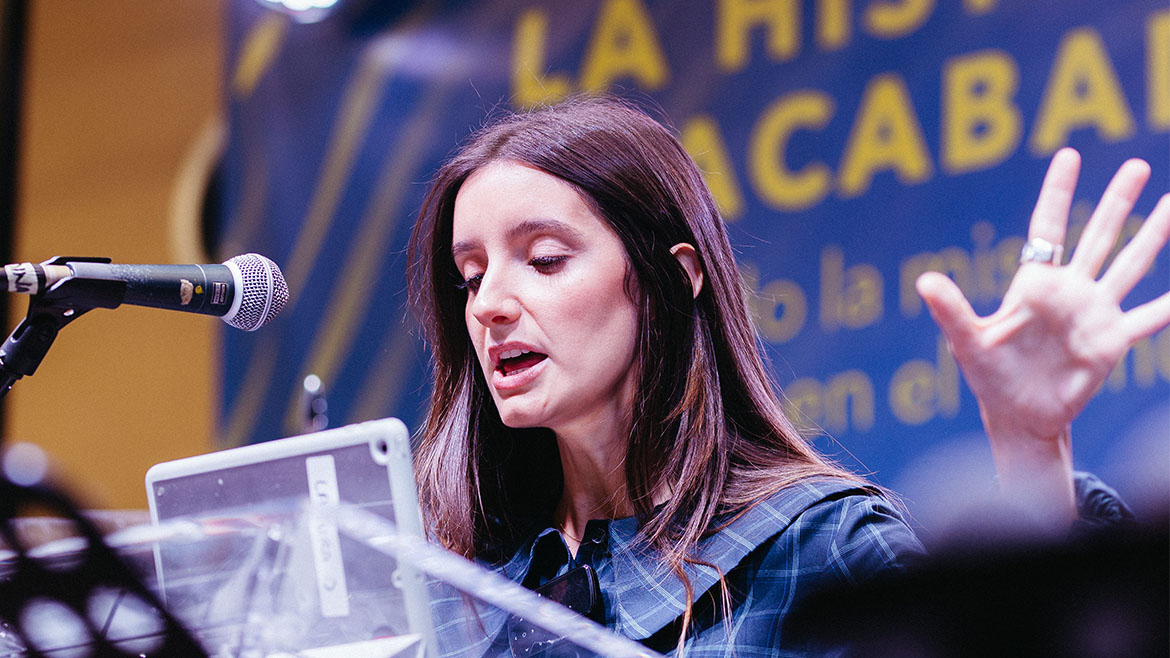 Laura Pérez, durante la exposición bíblica del domingo en Fórum GBU. Foto: GBU