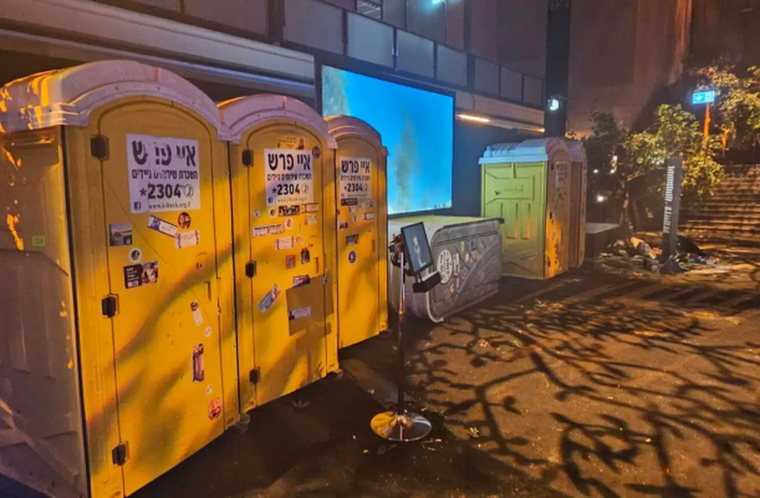 Al otro lado del pasillo hay retretes Dixi amarillos acribillados donde los asistentes al festival intentaron esconderse de los terroristas, sin éxito. Un vídeo muestra a un hombre disparando con su rifle contra los retretes.